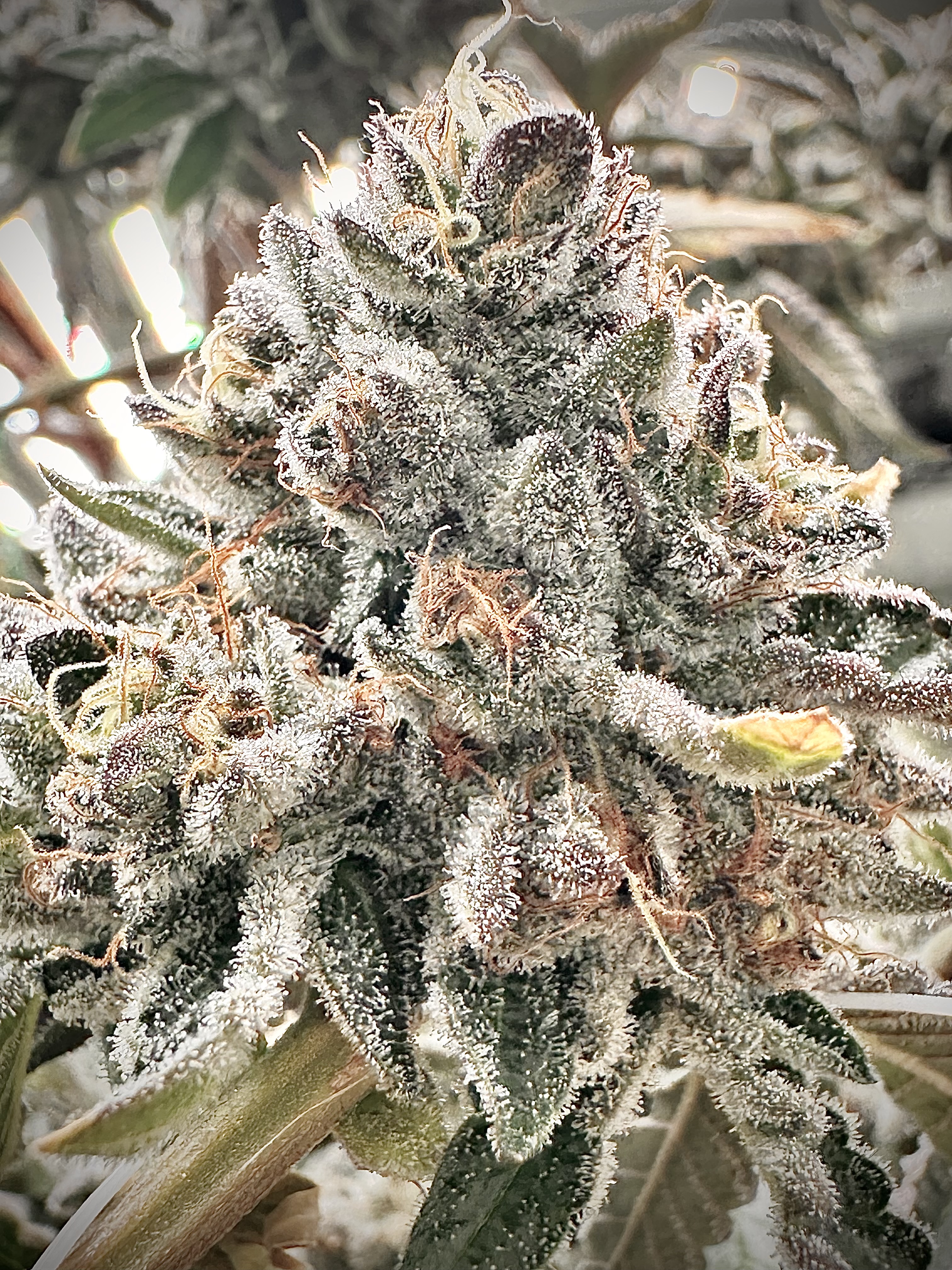 Leo’s head stash clone for complex gas terps with triangle kush and cherry pie kush morphological characteristics. Complex layers of lemon rind and jet fuel blended with ethanol and starter fluid. The high is akin to old school headband with an intense strong cerebral high. This selection was an outlier in the entire population. She towered over other contenders and her terps all leaned to the Triangle and Cherry Pie Kush side of the house complemented by the OG-lineage found in the Biscotti. Despite this being a Biscotti hybrid she does NOT exhibit gelato expression or terps, this was an obvious recessive contender showing strong traits of OG, Triangle, and Cherry Pie Kush. This was Leo’s private smoke for the last couple years. She was our favorite out of a 360 plant sift of this strain.